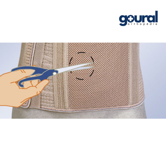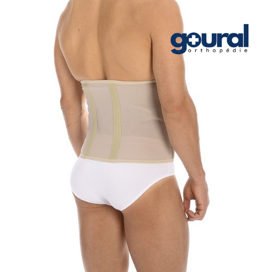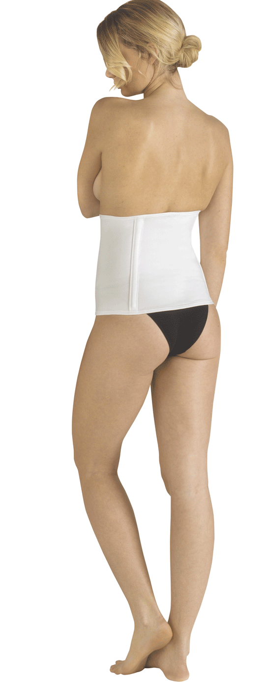Whale-shaped abdominal support belt with 3 Velcro closures, 27 or 32 cm