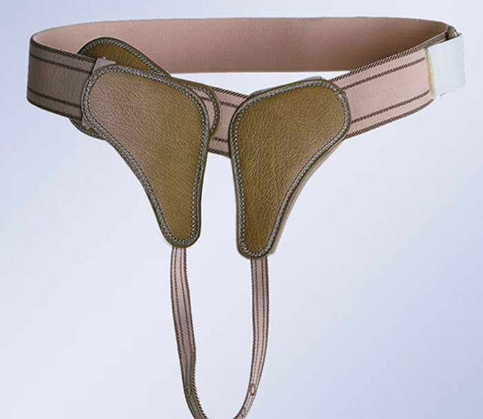Anatomical pads larger than those of hernia bandages with Velcro closure, extended by straps under the buttocks and fixing on the sides.