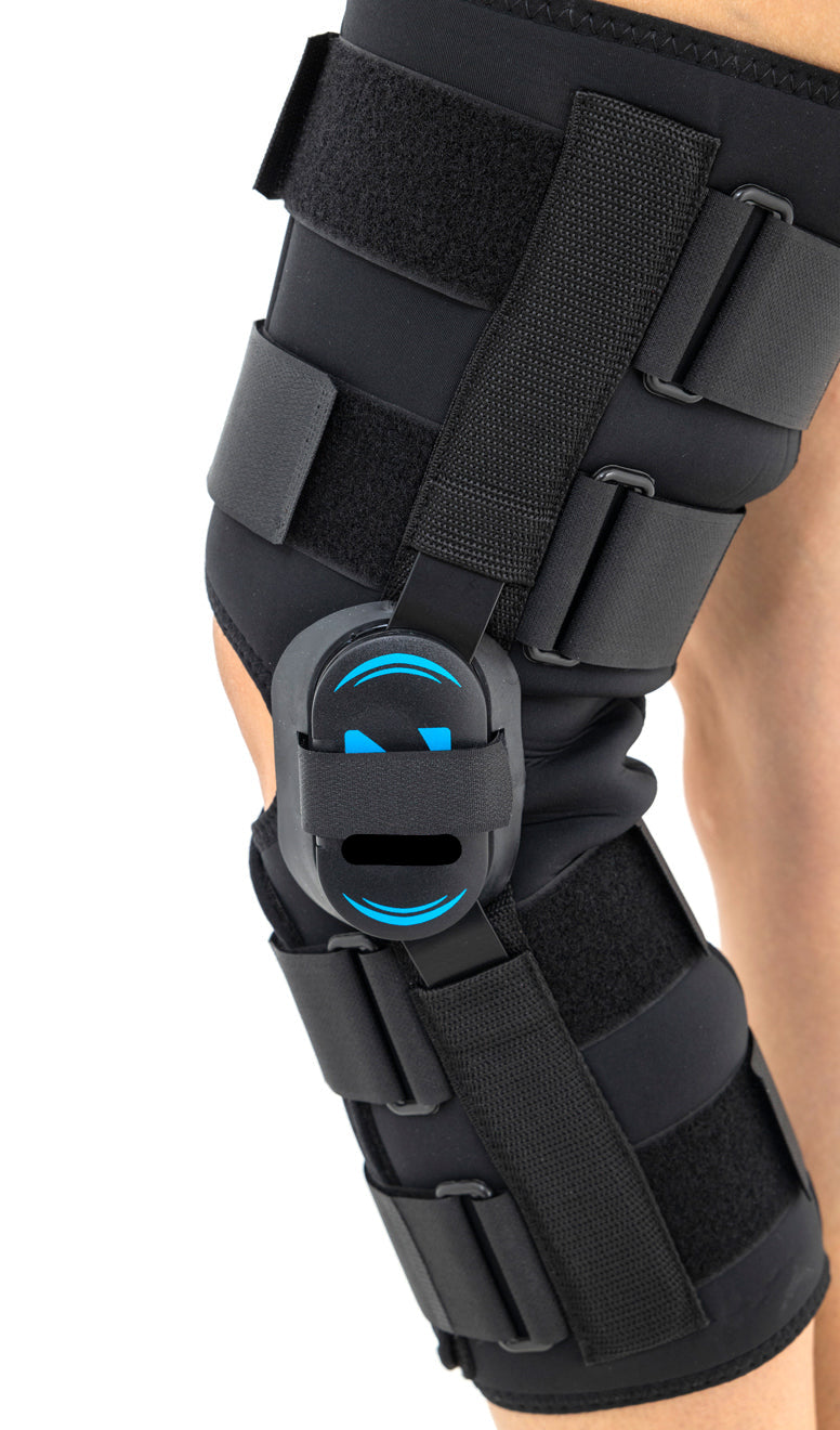 Fully opening ligament knee brace for easy fitting and precise adjustment.