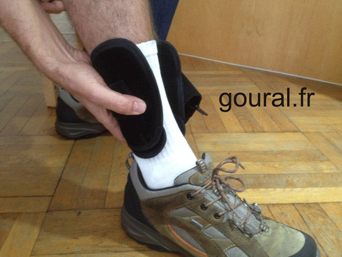 In fact, an integrated semi-rigid structure allows the bracelet to be held in the open position and it will automatically wrap around your ankle when you apply it.