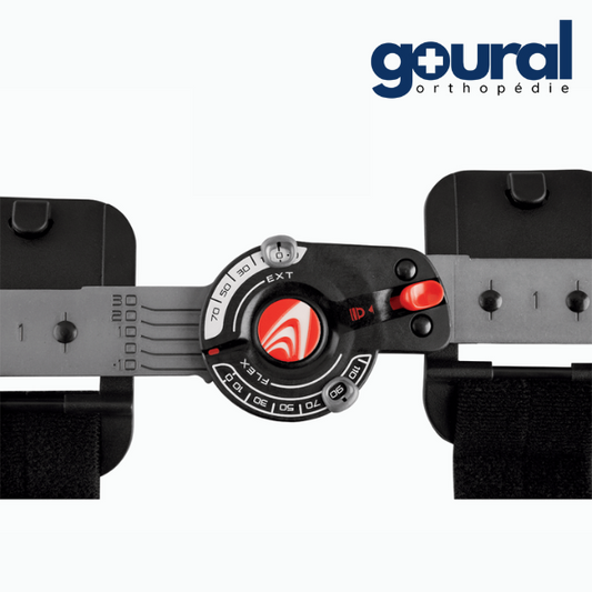 Attelle de genou réglable et blocable 2 bandes larges GenuScope 2