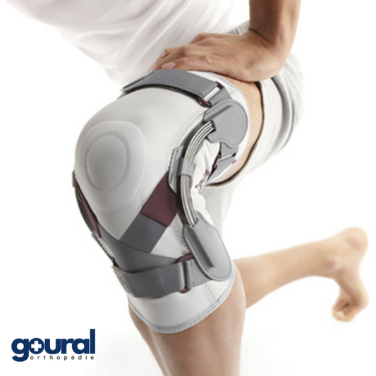 Genouillère ligamentaire longue avec baleines rigides articulées asymétriques exclusives goural Activ pren 2Ri
