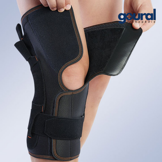 Genouillère néoprène avec baleines rigides polycentriques avec ouverture sur cuisse