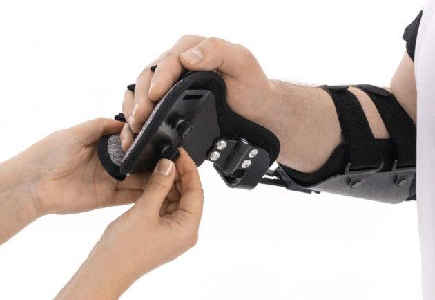 L’orthèse pour membre supérieur est une attelle professionnelle qui assure une stabilisation et l’immobilisation parfaite du coude, du poignet et de l’avant-bras avec de nombreux réglages précis possibles.
