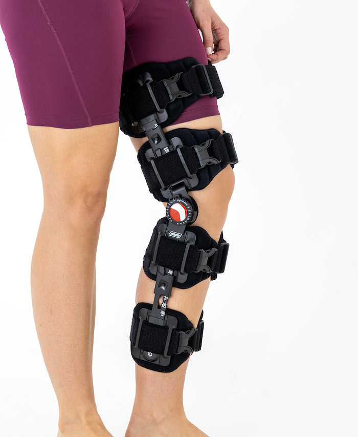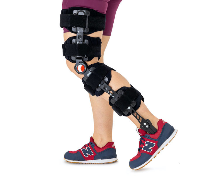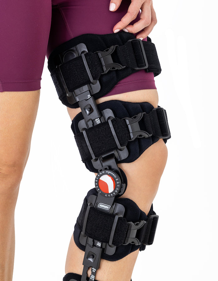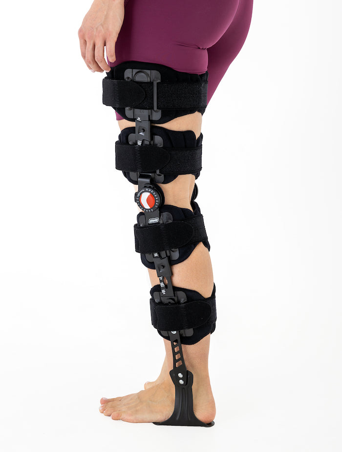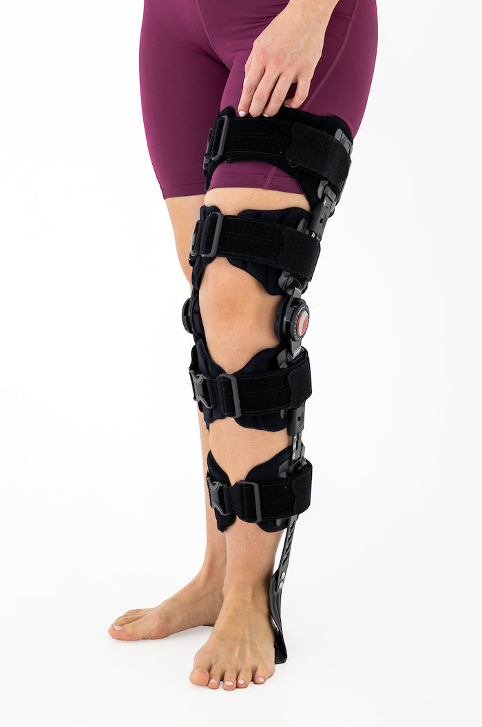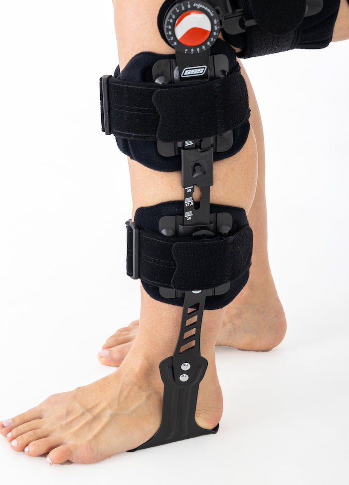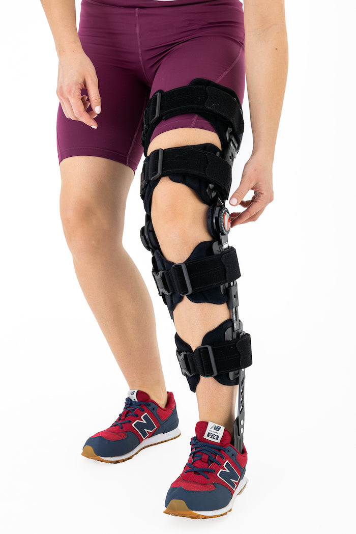 Le verrouillage de la goutte offre une gamme de mouvement lisse d’ajustement à tous les 15 degrés, ce qui permet de changer l’extension ou la flexion du genou avec le progrès de la réadaptation. Ces verrous sont conçus de manière à ce que la modification des angles de flexion et d’extension puisse être effectuée sans l’utilisation d’outils, et un système de sécurité supplémentaire empêche les changements d’angle non autorisés. Ils sont fabriqués en plastique avec l’ajout de fibres de carbone, ce qui les rend légers, inertes à la sueur de l’utilisateur et au sel contenu dans celui-ci, et en même temps suffisamment rigides pour garantir le bon fonctionnement du produit. De plus, les éclisses sont réglables indépendamment en longueur. Le changement de la longueur de l’orthèse est effectué à l’aide d’un mécanisme innovant de presse-glissière sans entretien.