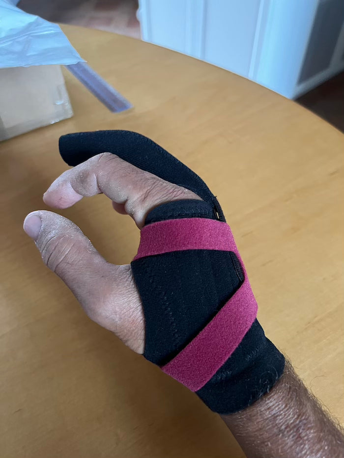 Introduire ensuite la main dans le gant et les doigts concernés sur l’attelle correspondante.