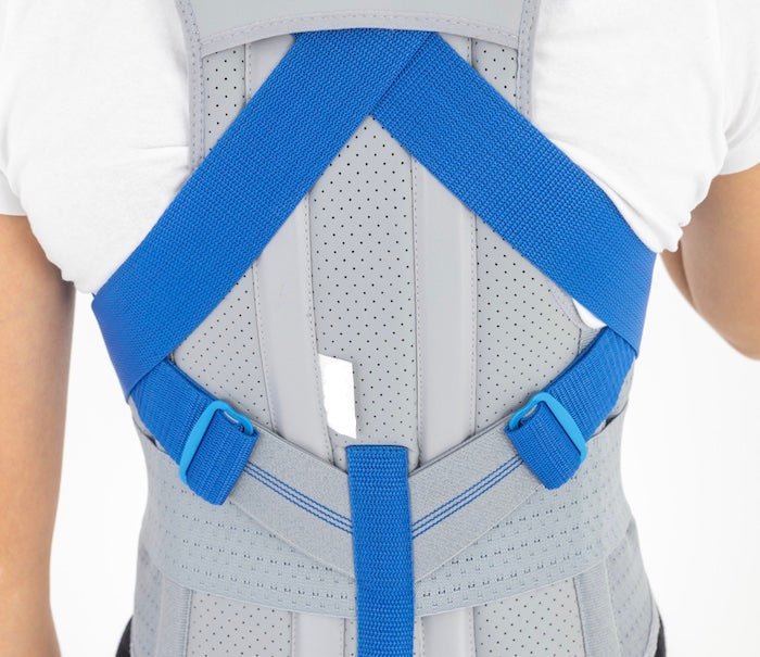 Ce corset pédiatrique maintient et sécurise le rachis avec un rappel de posture progressif et réglable facilement grâce à l'accès facile aux extrémités des sangles de tension sur le plastron abdominal.