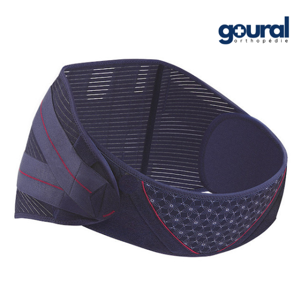Gaine sacro-lombaire faite de matériaux respirants et de tissus au toucher très doux pour aider à soulager la sensation inconfortable de poids dans le bas-ventre, les douleurs dorsales et pelviennes pendant la grossesse.