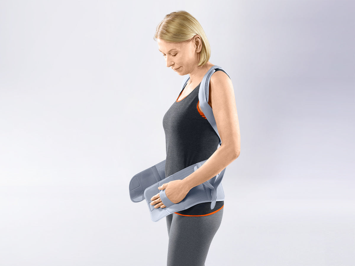 De larges boucles d'ouverture lorsque la sangle d'épaule est ouverte permettent d'enfiler et d'enlever facilement l'orthèse.