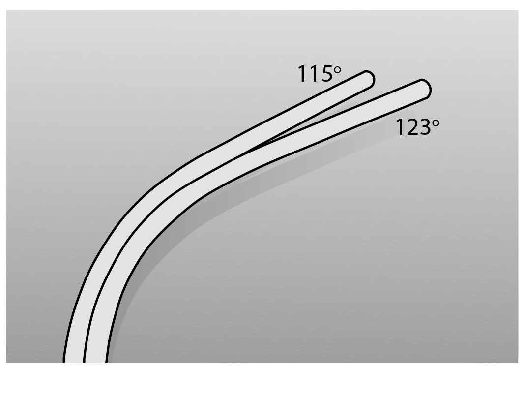 115° = base d’assise étroite / 123° = base d’assise large.