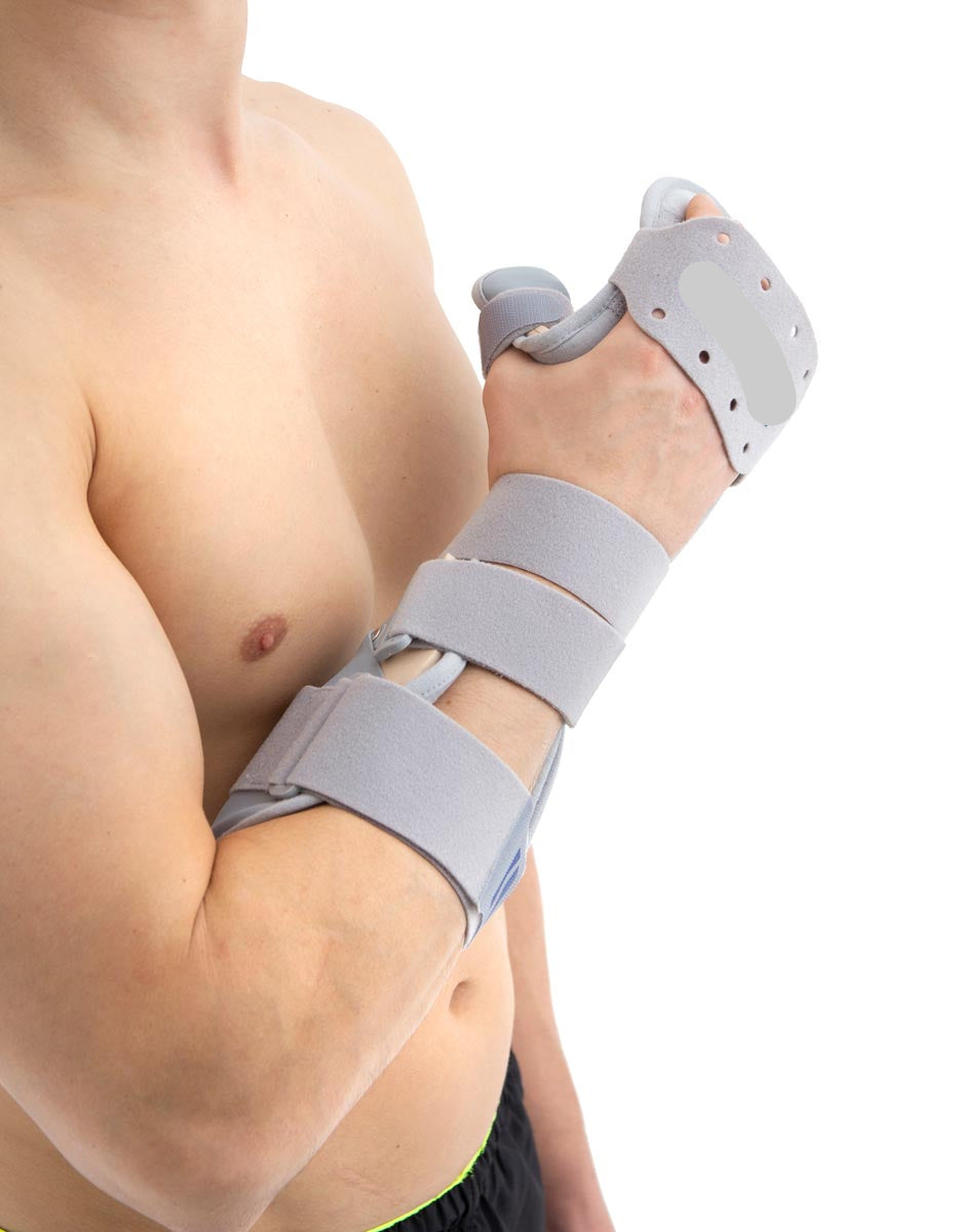 L'orthèse-attelle palmaire de la main et de l’avant-bras avec séparation des doigts a été développé pour le traitement de positionnement et l’immobilisation des contractures du poignet, de l’articulation radio-carpienne, de la main et des doigts.