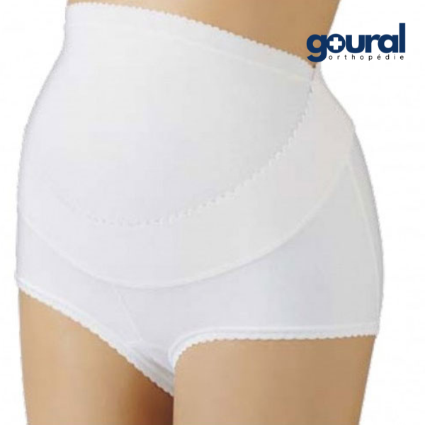 La gaine maternité en coton stretch pur GestaFlex I, se développe sur le corps et soutient sans constriction.