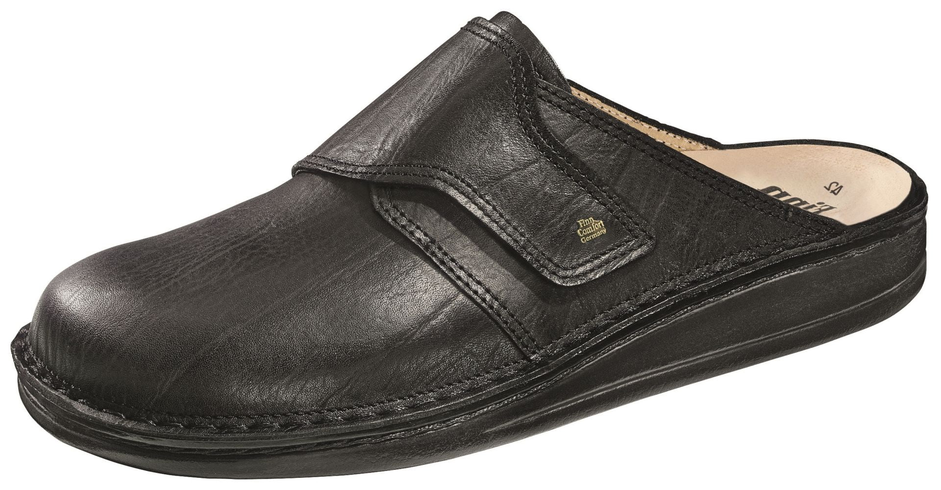 Calez bien votre talon dans la cuvette talonnière de la semelle Finn Comfort - à la limite de celle-ci. Votre voute plantaire doit se positionner naturellement et parfaitement. Ajuster vos brides et mettez vous debout. Votre orteil le plus long doit venir à la limite de la couture, voire 3 à 5 mm en retrait.