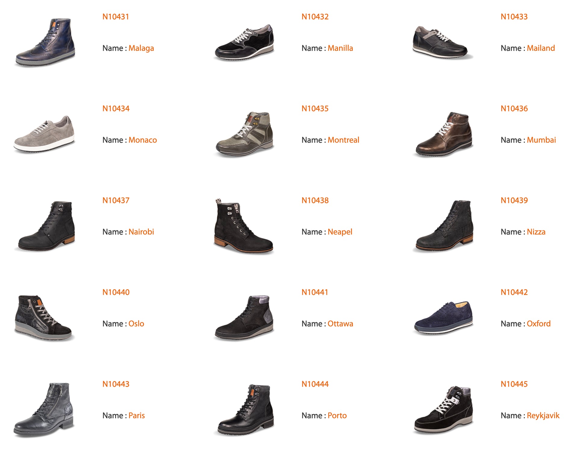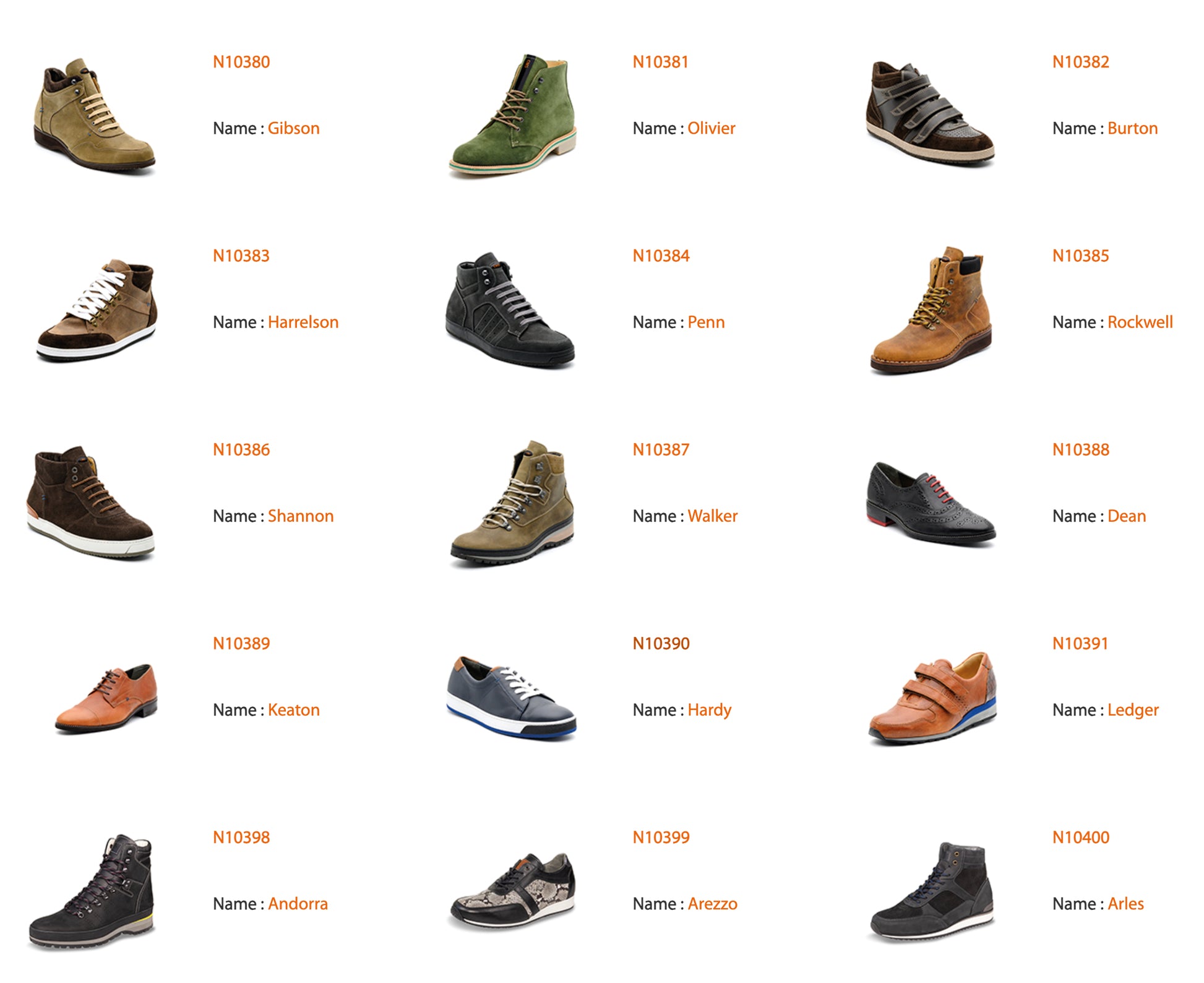 Choisissez parmi les modèles ci-dessous, et demandez nous un devis et délai en précisant la référence et votre pointure par mail séparé à contact@goural.fr.