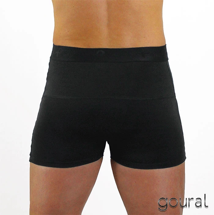 Slip-Boxer de pression forte avec bandage herniaire intégré pour réduire les hernies inguinales.