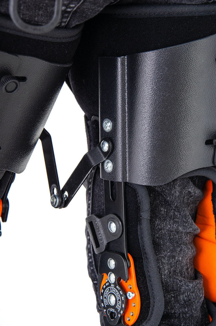 L'orthèse de genou est composée d'attelles latérales légères équipées d'un système de verrouillage de la flexion articulaire (Joint Flex Control), qui garantit l'ajustement de la mobilité de l'enfant. Ce verrou est fabriqué en acier extrêmement durable, ce qui le rend très résistant à toute charge.
