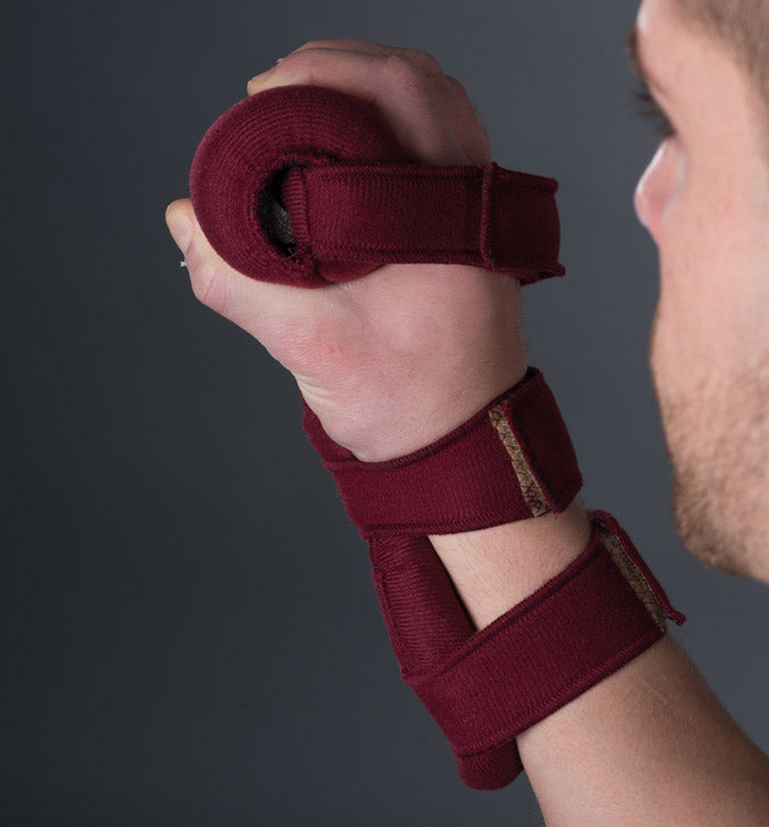 Positionnement de la main pour éviter ou réduire les contractures en flexion des doigts en cas d'hémiplégie et de traumatisme crânien.